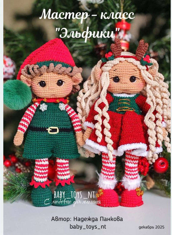 - подробное описание кукол - эльфов (мальчика и девочки) крючком;
