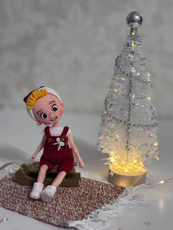 Мастер-класс в текстовом формате на 26-ти страницах с фото. При вязании указанными матреиалами у Вас полусится кукла ростом около 15,5 см на проводлочном каркасе с поворотной головой. В Мк входит одежа, обувь, оформление личика, тонировка.