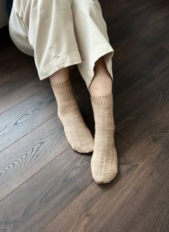 Простой узор великолепно вписывается как в мужскую так и женскую модель носочков.